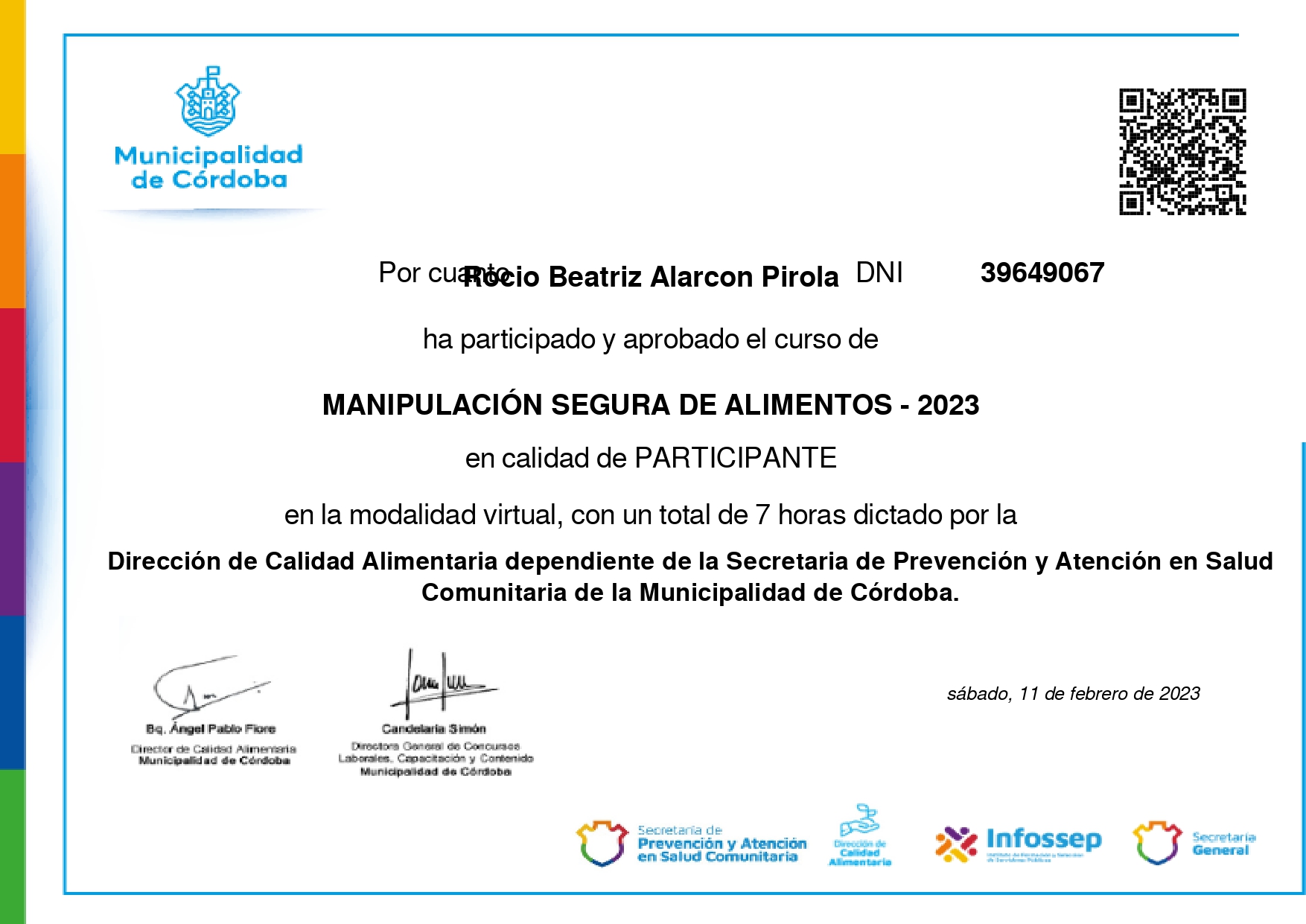 - Extensión universitaria (CSE), Programa Salud Integral, Proyecto "Escuelas Públicas Saludables" (40 hs)